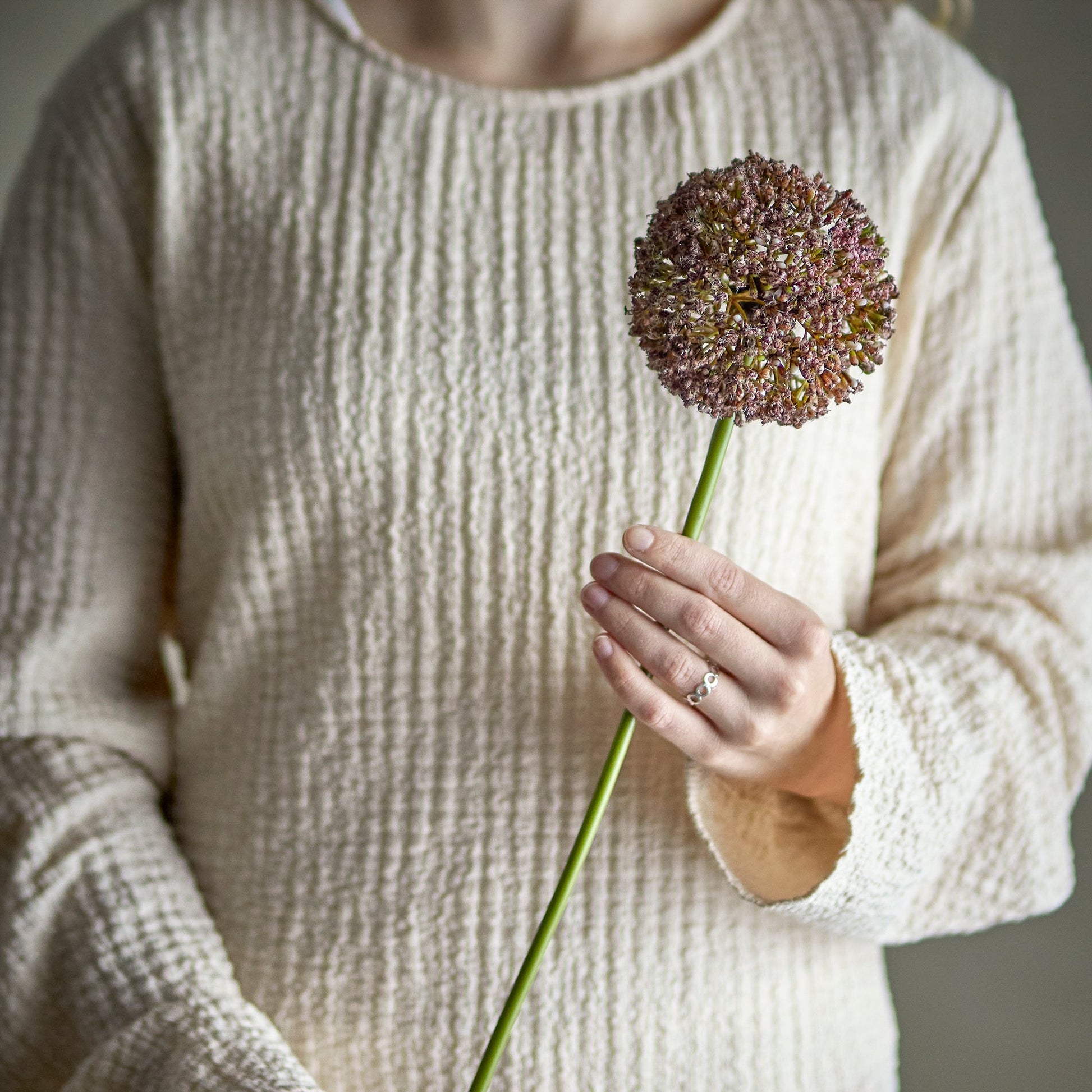 Allium Artificial Stem is a beautiful stem with a round, brown/purple flower head. It can stand alone in tall vases or be combined with other artificial stems to create an everlasting bouquet that suits your taste. Shape the stem to fit perfectly in your favourite vase.