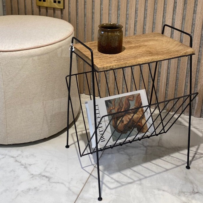 Use the rack as a miniature side table next to your chair or sofa and place your cuppa on the wooden shelf, your magazines and papers in the rack and your favourite catalogues and look books on the shelf below.