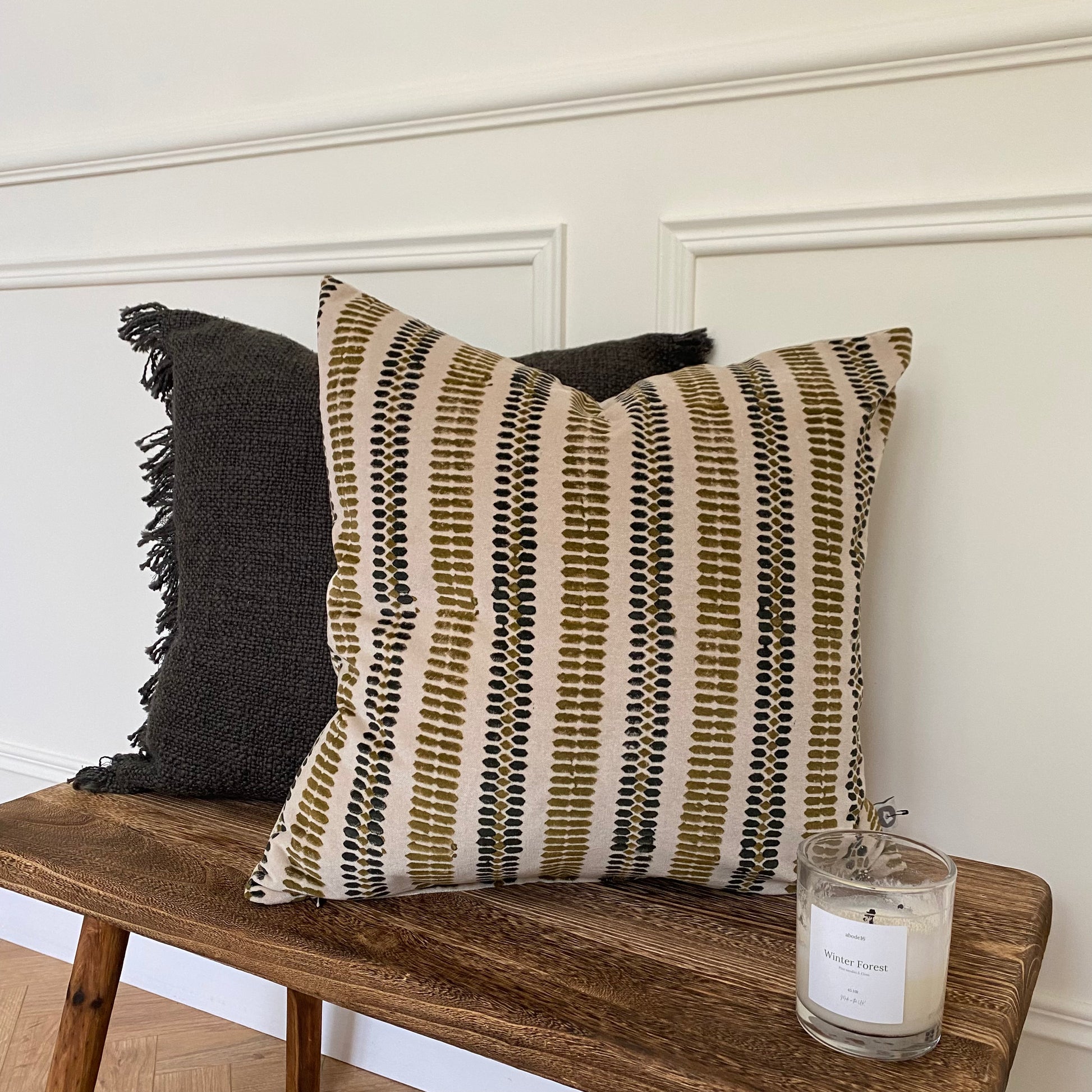 Elevate your living space with this handmade cushion cover in beige, mustard and dark grey tones. Crafted from cotton velvet with a unique block print, each piece showcases the charm of traditional Indian printing techniques, adding elegance and individuality to your home decor.